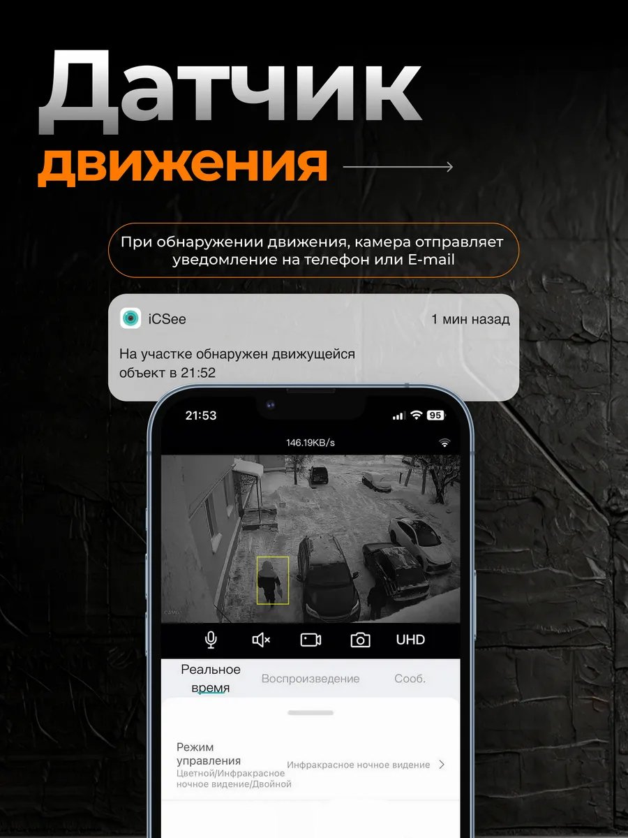Эта технологичная беспроводная Wi-Fi камера видеонаблюдения создана для тех, кто ценит комфорт и безопасность. Она записывает видео в высоком разрешении 4K с любого ракурса благодаря 5МП линзе, съемке на 360 градусов и поворотному механизму. Легкое подключение через Wi-Fi и дистанционное управление со смартфона через приложение ICSee или удаленный онлайн доступ делают использование камеры простым и удобным.